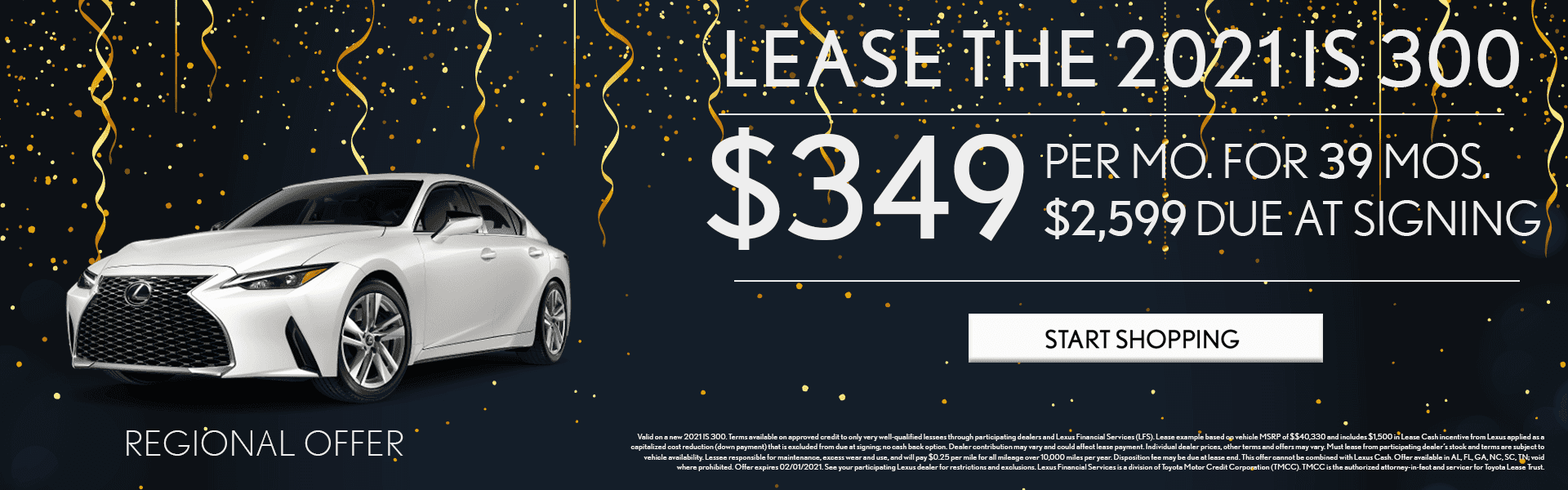Offer available in al, fl, ga, nc, sc, tn; See your participating lexus dealer for restrictions and exclusions. Offer available in al, fl, ga, nc, sc, tn; Offer available in ia, il, in, ks, ky, mi, mn, mo, ne, oh, wi; This offer cannot be combined with lexus cash.